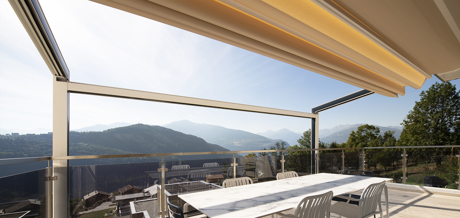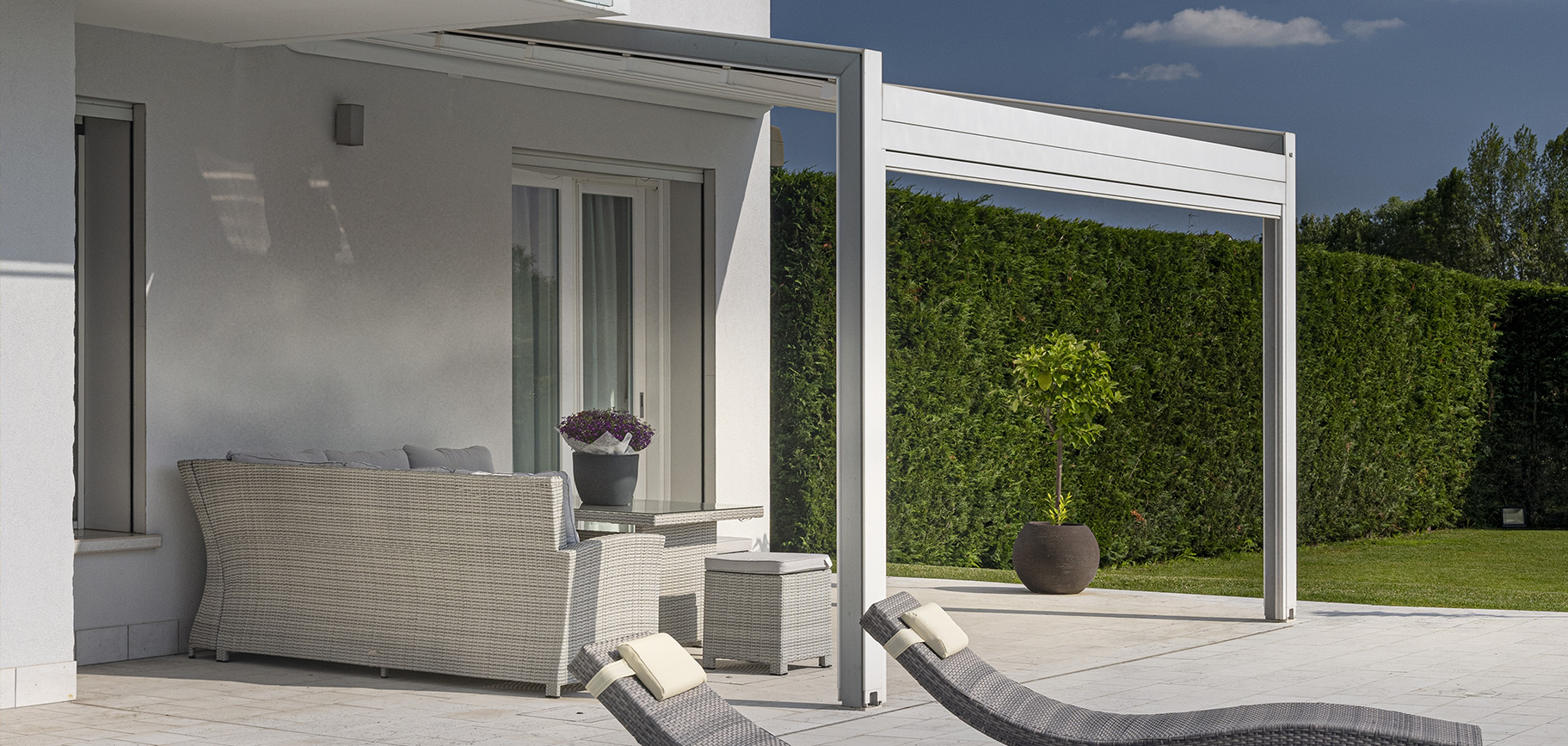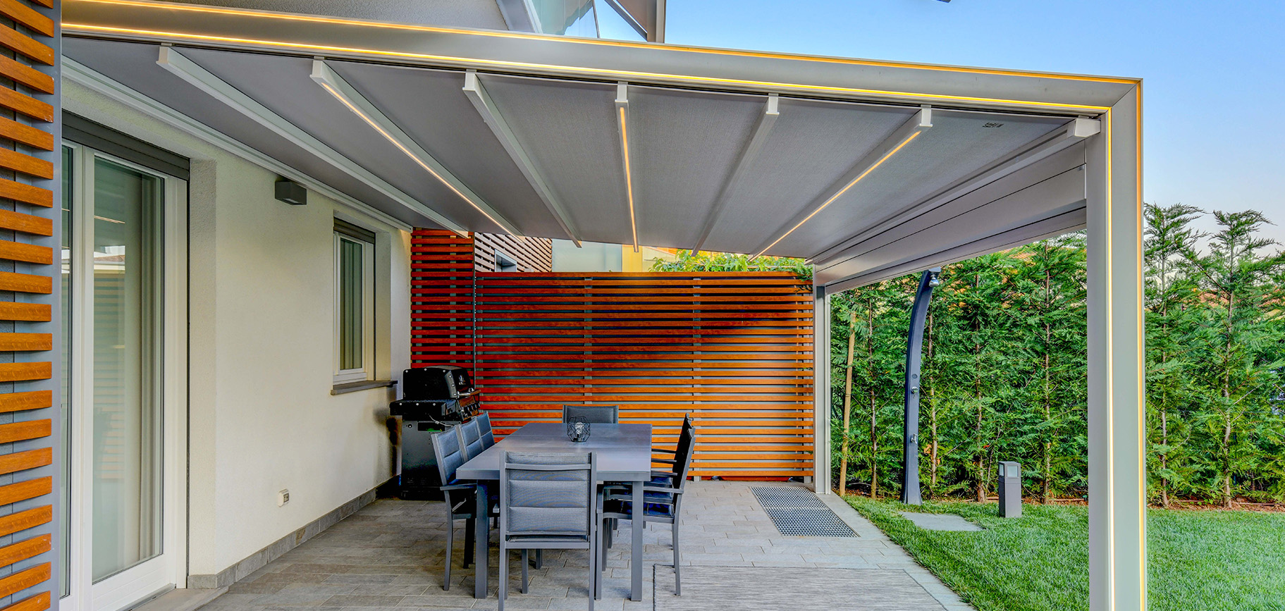 La nuova tenda a pergola dal design lineare, che si contraddistingue per d...