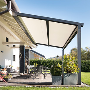 Le caratteristiche costruttive della tenda a pergola con telo retrattile consentono di creare coperture anche di dimensioni notevoli, a moduli affiancabili e con una pendenza minima di soli 7°. A voi resterà solo la gioia di vivere con leggerezza i vostri momenti all’aria aperta.