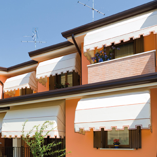 La struttura in alluminio verniciato a polvere vi assicura resistenza agli agenti atmosferici e affidabilità. I tessuti in PVC, acrilico o poliestere proteggeranno finestre o ingressi dai raggi solari e, per un’estetica raffinata e in linea con i vostri edifici, potrete scegliere tra 7 diverse tipologie di balze.