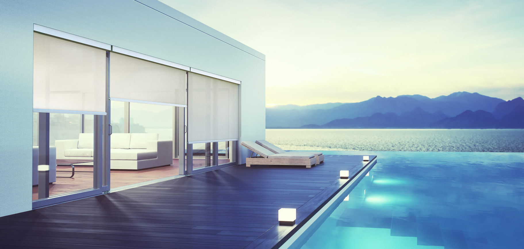 Tenda a rullo con cassonetto da 85 mm. Disponibile in 2 varianti (tondo, quadro), dotata di guida cavetto inox ø2 mm.