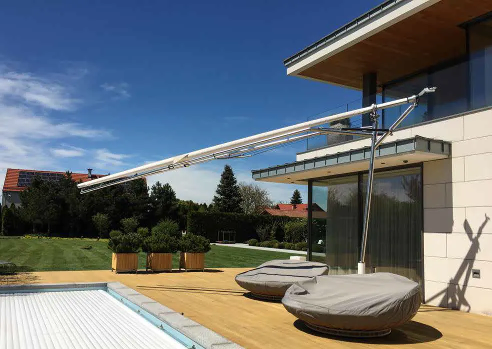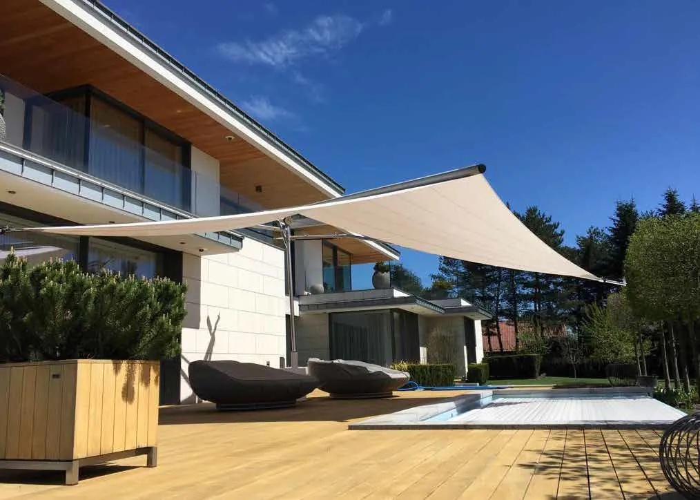La rotabilità di 270 gradi evoca il Ombrellone a vela di 30 m² e protezione solare di 75 m². Se il vento diventa troppo forte, il sistema del braccio si piega automaticamente e la vela si rannicchia. Che si tratti di un giardino, un patio o una terrazza, la tenda da sole a vela può trasformare l'ambiente esterno in uno spazio accogliente e elegante.